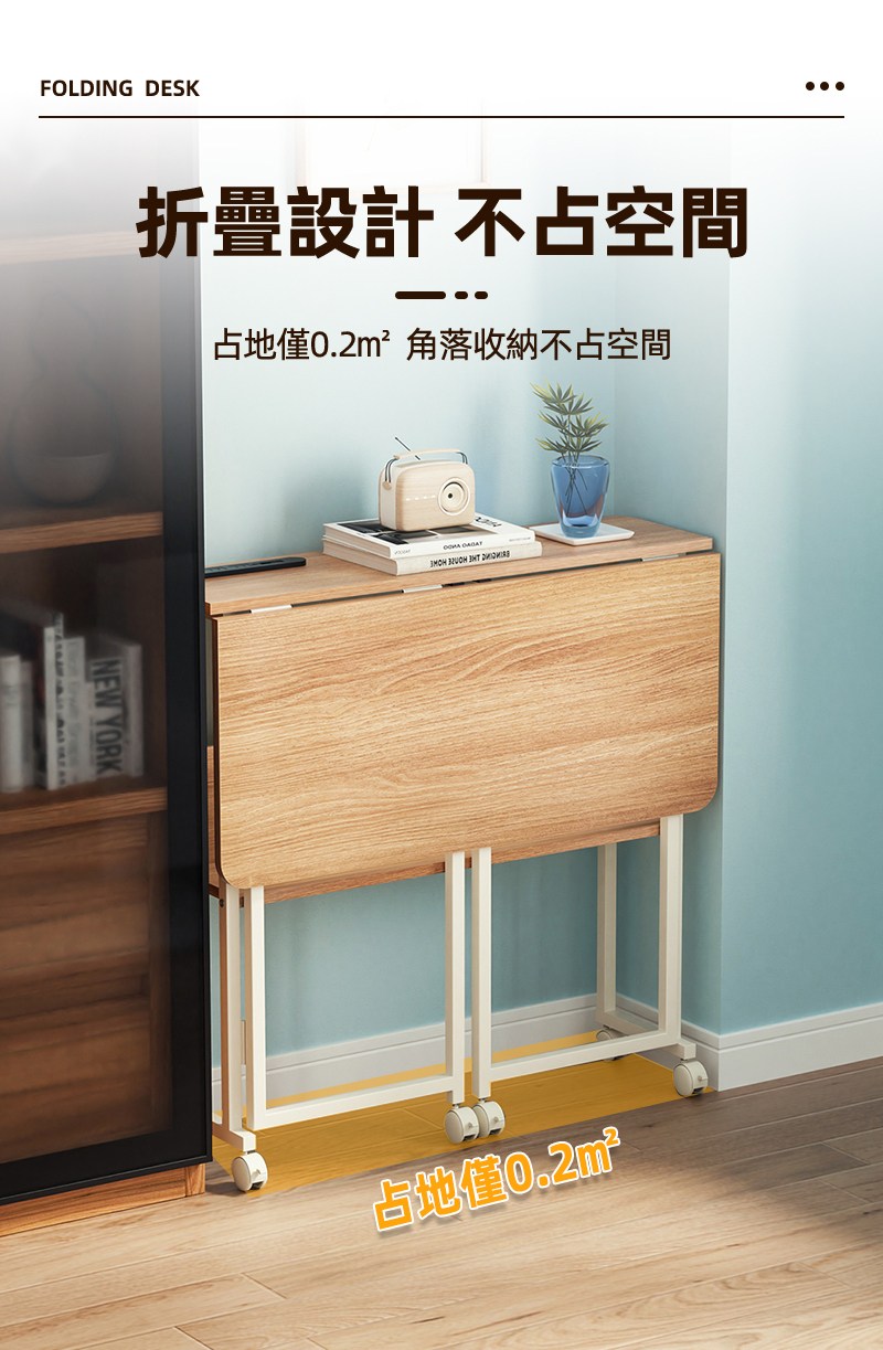dayneeds 日需百備 日系無印風摺疊書桌 附滑輪組 SBH837308BKG 80 x 45 x 74.5cm 胡桃木