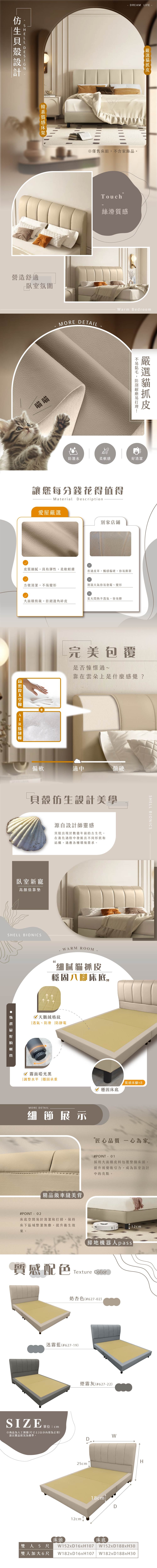 IHouse-貝殼波堤 雙人5尺(貓抓皮床頭片+高腳床架)-房間兩件組/床組奶杏仁#627-02