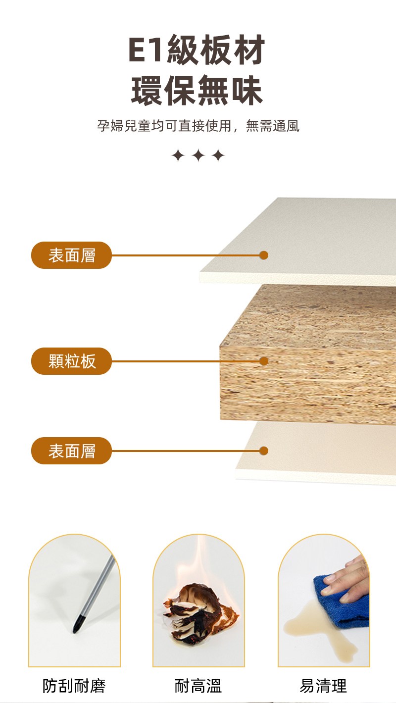 hoi!林氏木業復古風暖木色可移動岩板儲物茶几 QA1L