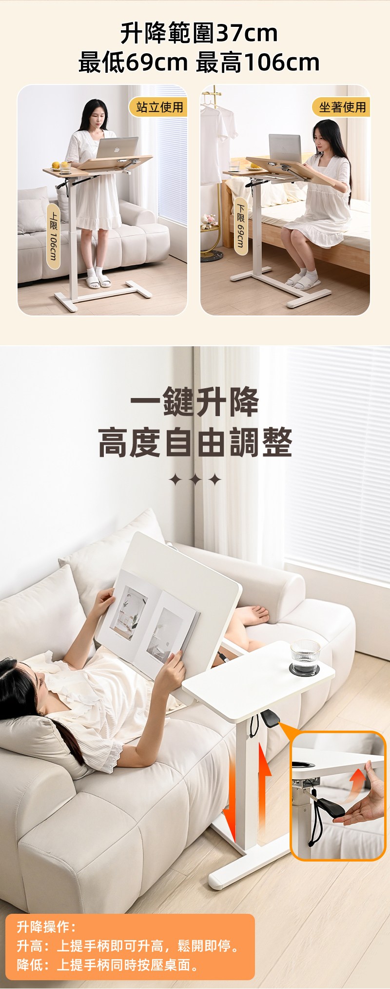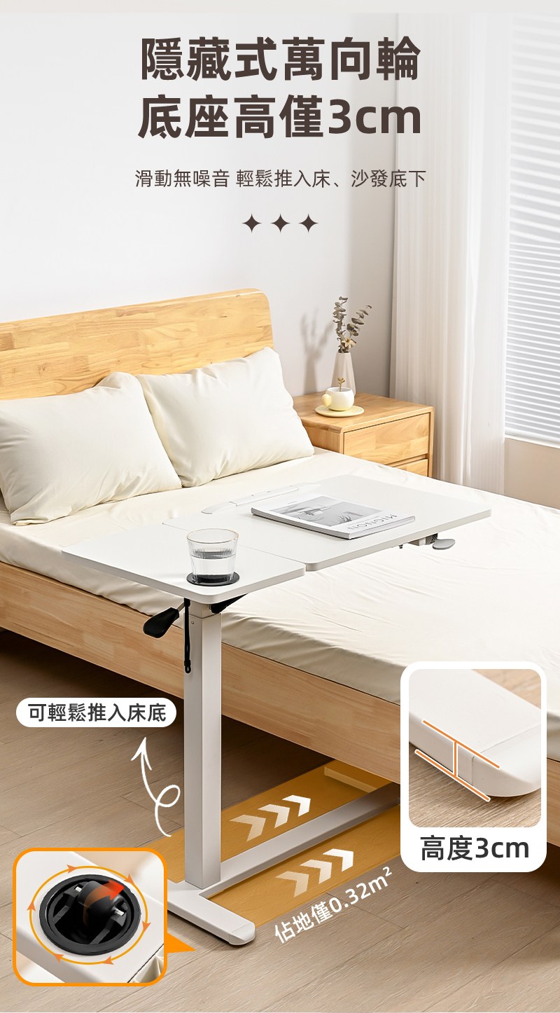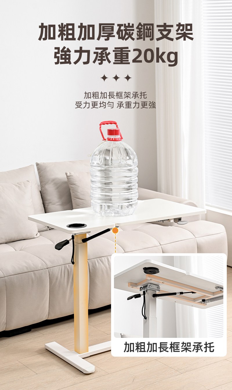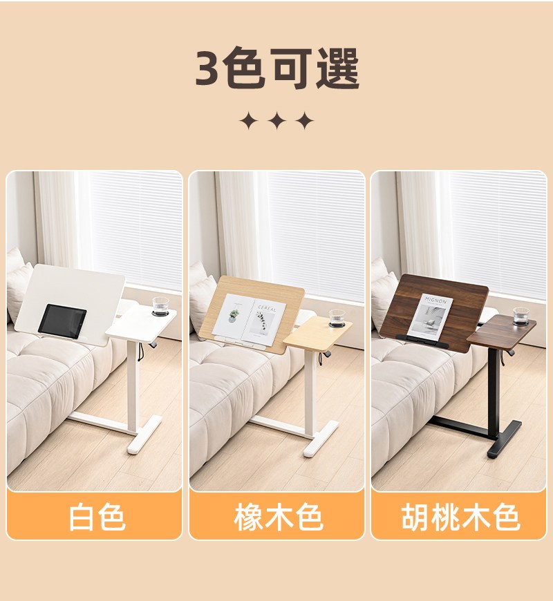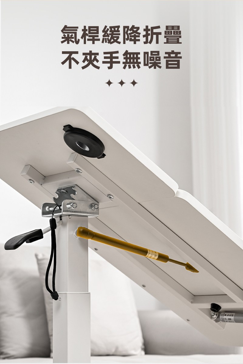 【慢慢家居】旗艦款-氣壓式無段升降移動邊桌 (可折疊 充電 升降桌)氣壓升降桌-白桌面