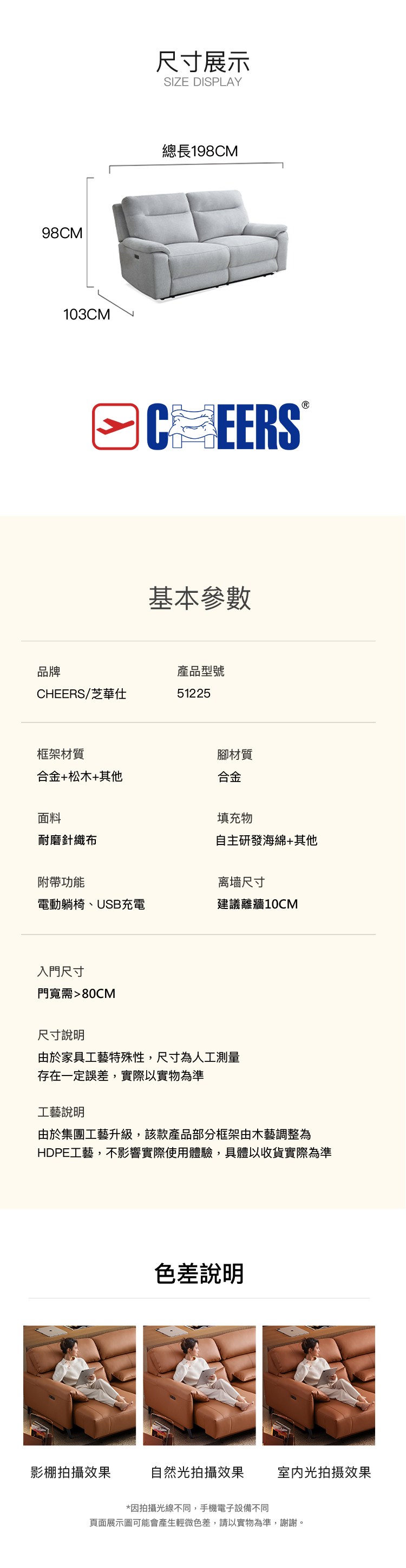 傢俱工場-杜老爺 零靠牆240CM 貓抓皮雙電動沙發/沙發躺椅 (附USB孔)淺卡其#627-10