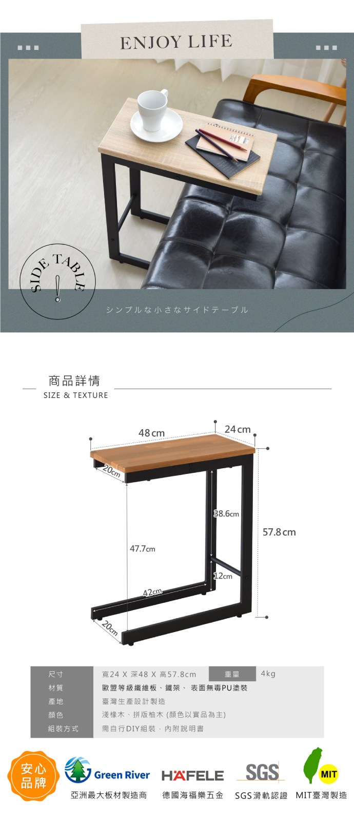 樹德SHUTER 氣壓升降邊桌 松露棕/潔淨白 左右側可選 /組 PLD-4812【APP滿額下單10%點數(單一帳號最高5000點)】1/31止