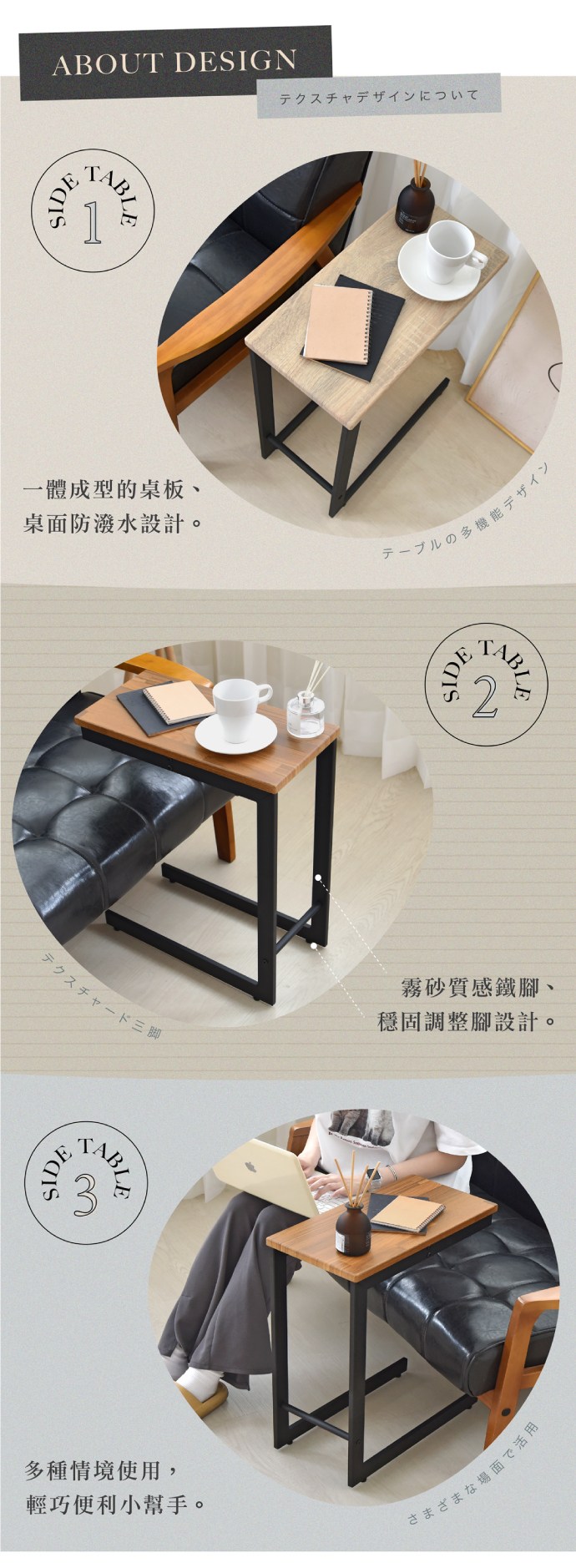 《HOPMA》簡約日式小邊桌 台灣製造 床邊懶人桌 沙發茶几桌-拼版柚木
