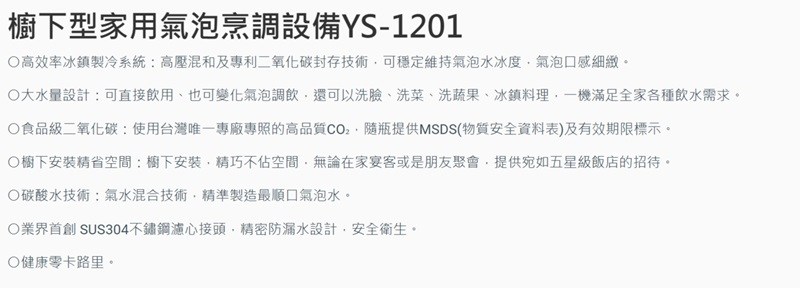 yaffle 亞爾浦 櫥下型 YS-1201 家用氣泡水機 (氣泡水、冰水、熱水、常溫水一次擁有