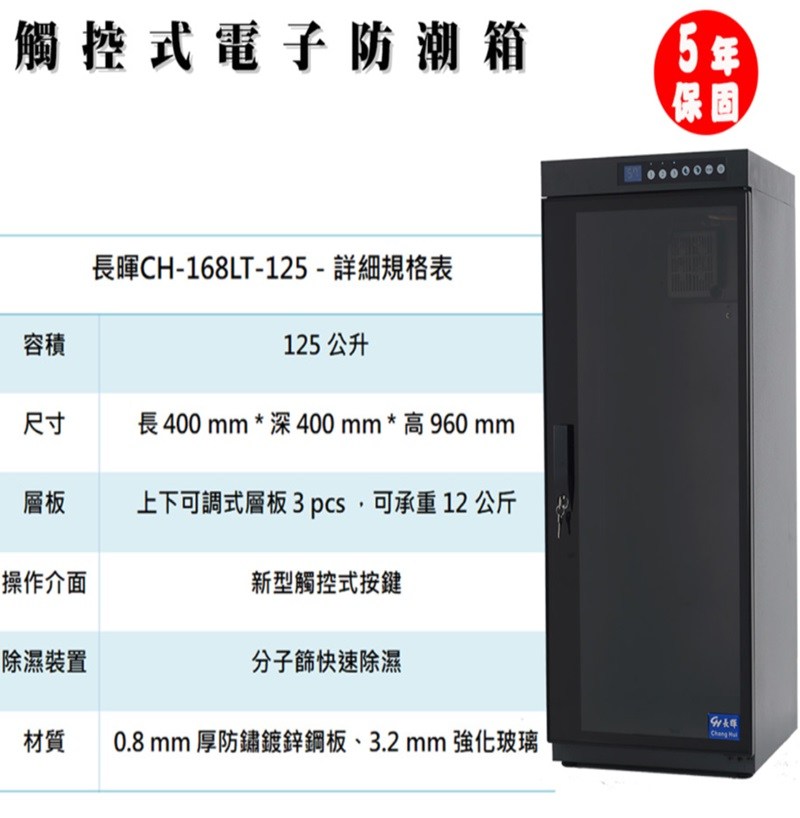 長暉 125L 觸控式數字顯示防潮箱 CH-168LT-125