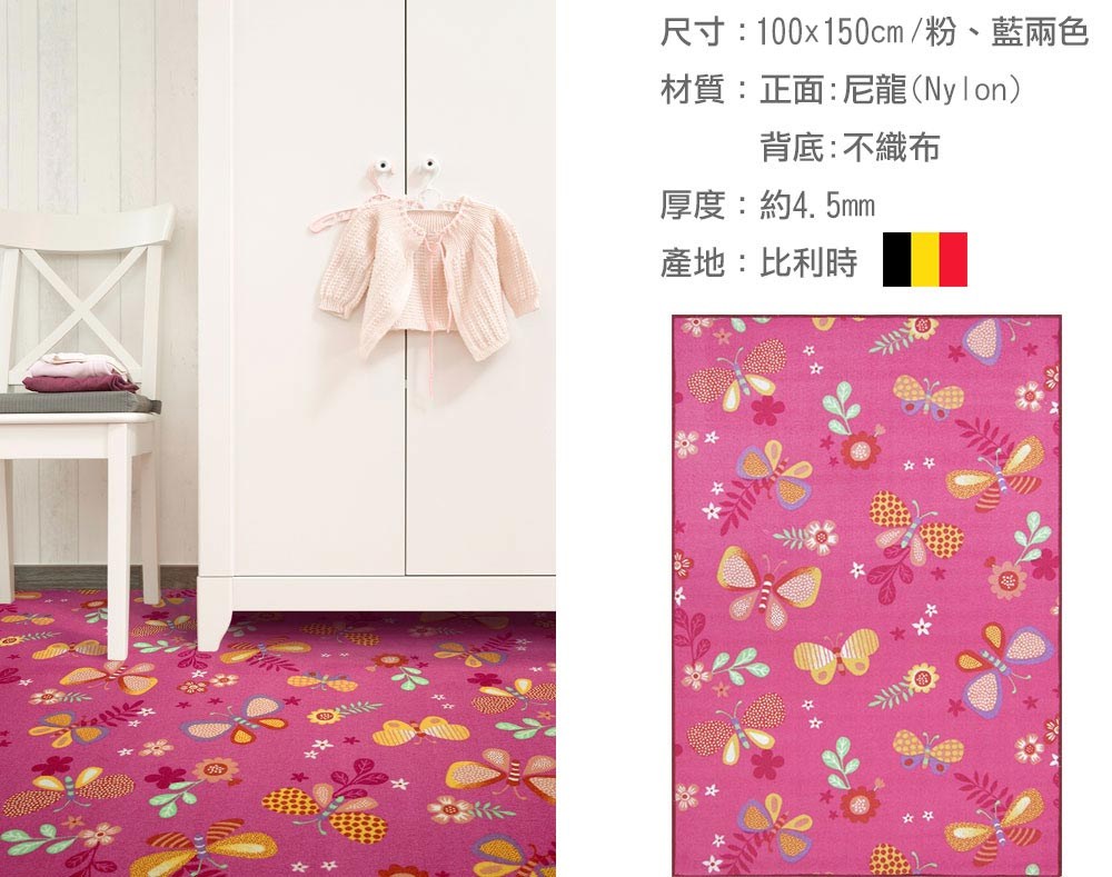粉紅蝴蝶圈毛地毯 100x150cm