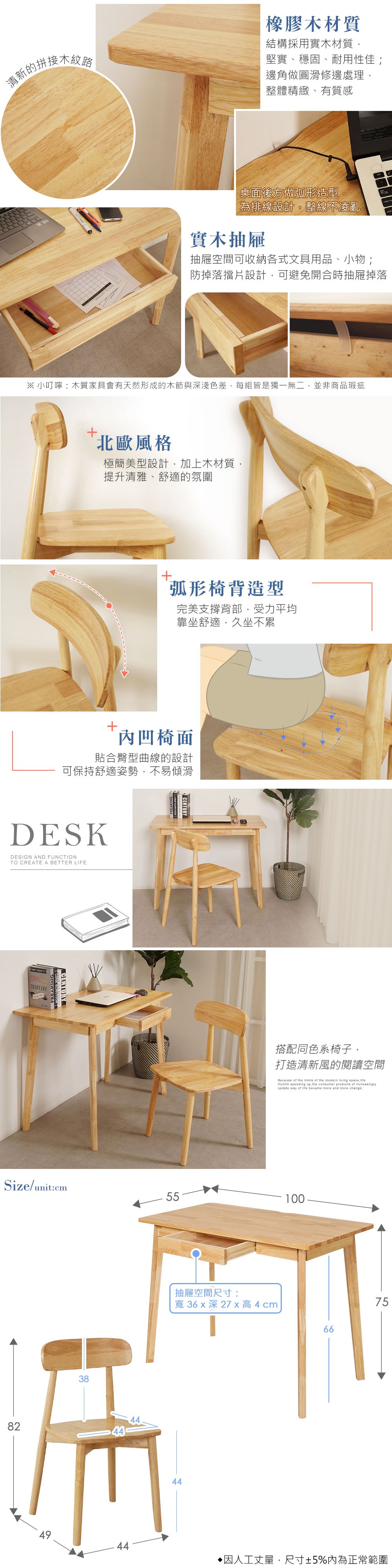 Homelike 喜家居100cm書桌椅組(一桌一椅)(2412-19)