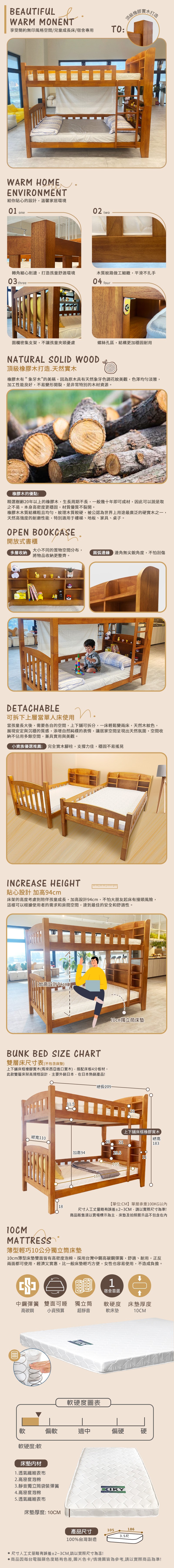 此賣場僅販售雙層床架+獨立筒床墊2張三件組