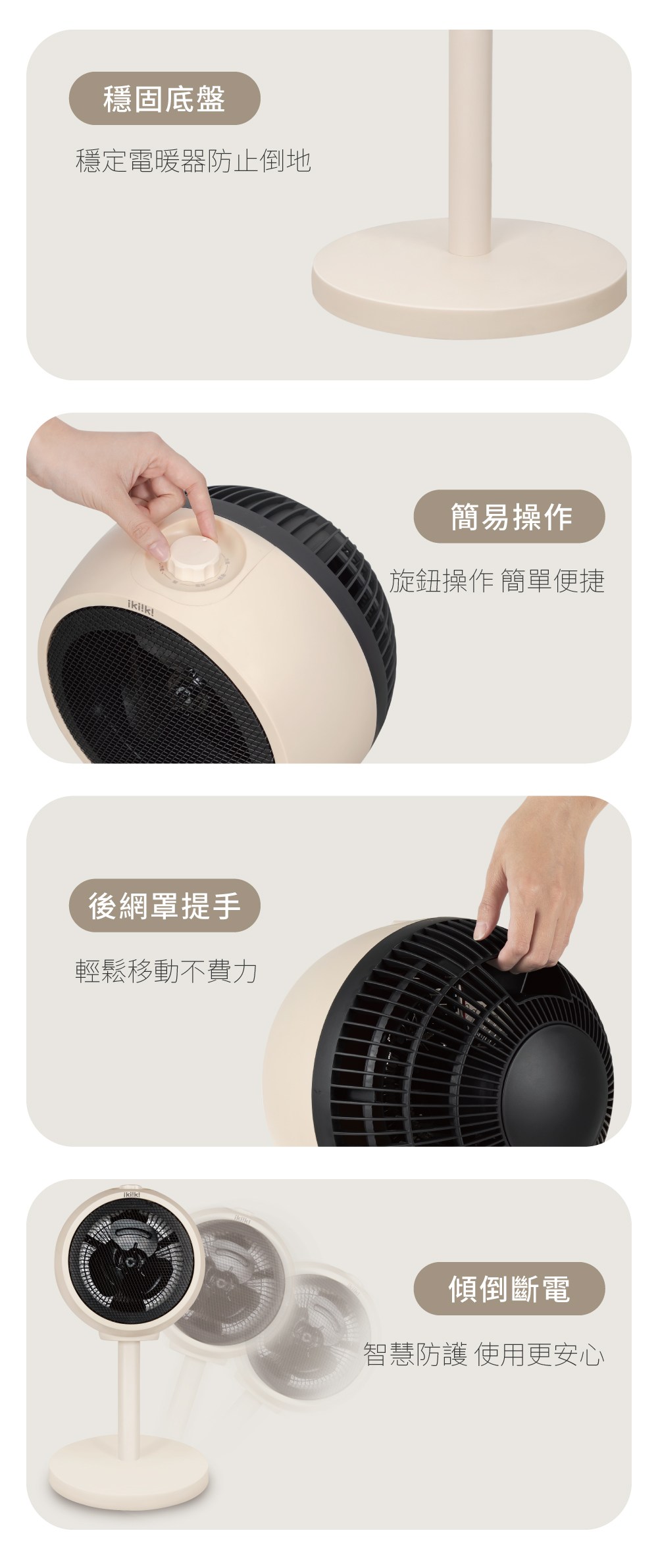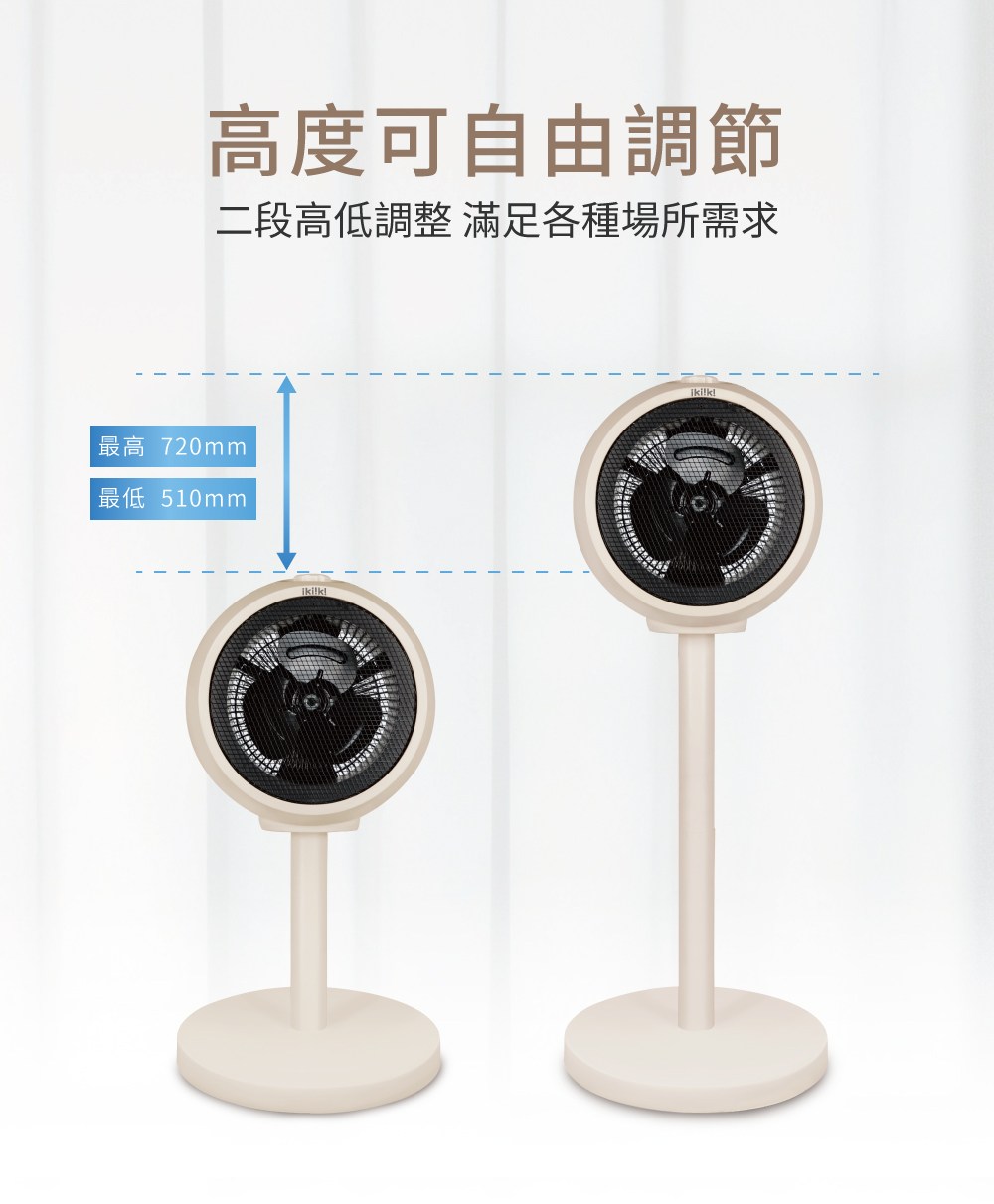 Kinyo 旋鈕式循環升降風扇 14吋 45W 奶茶 原廠保固 ACF-013