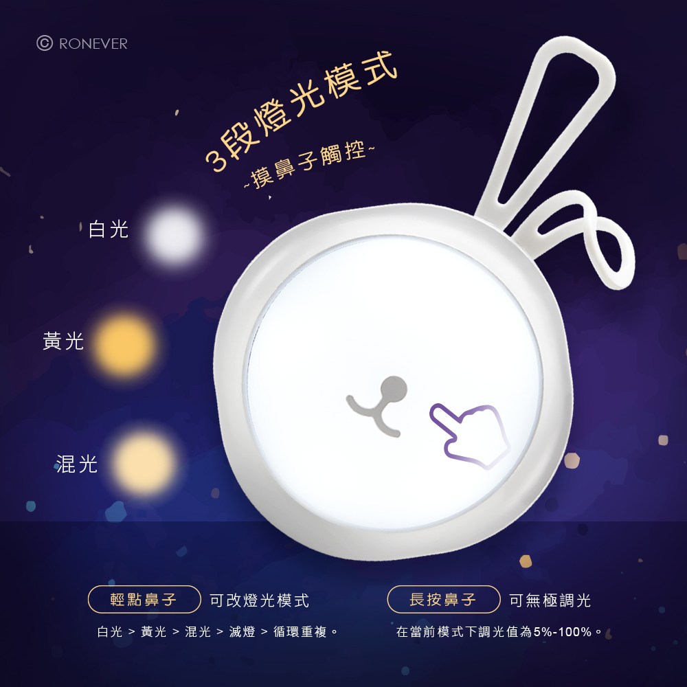 [RONEVER] 小兔子觸碰感應夜燈 PA011 白