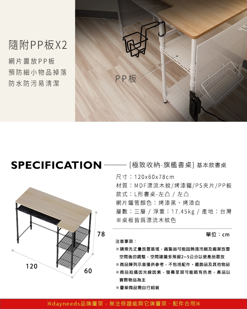 點我下載【dayneeds】極致收納旗艦書桌-基本款 多款可選白色-左凸