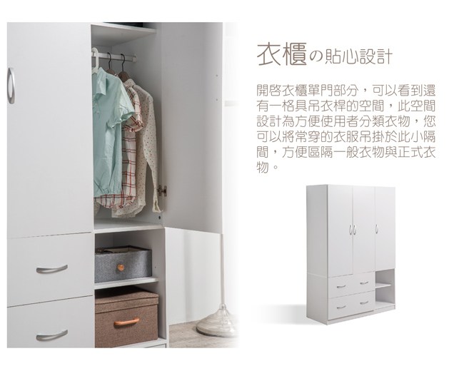 【TZUMii】雅緻三門二抽衣櫥/衣櫃/衣物收納櫃/收納櫃 (雙色可選)