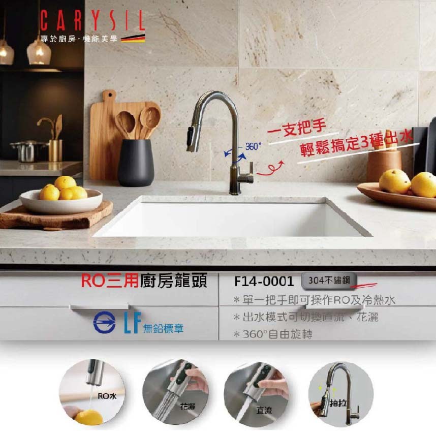 CARYSIL RO三用不銹鋼廚房龍頭