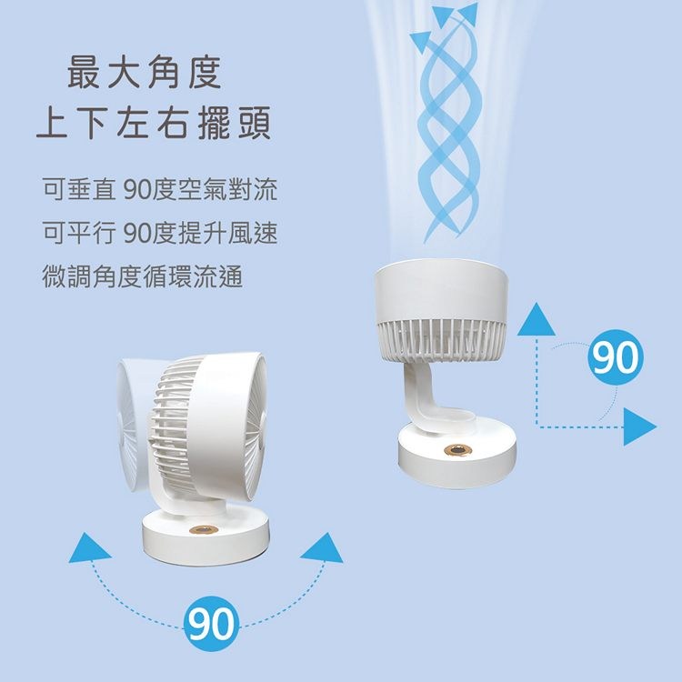 ◆ 仰角垂直90度循環吹幅,左右90度擺頭