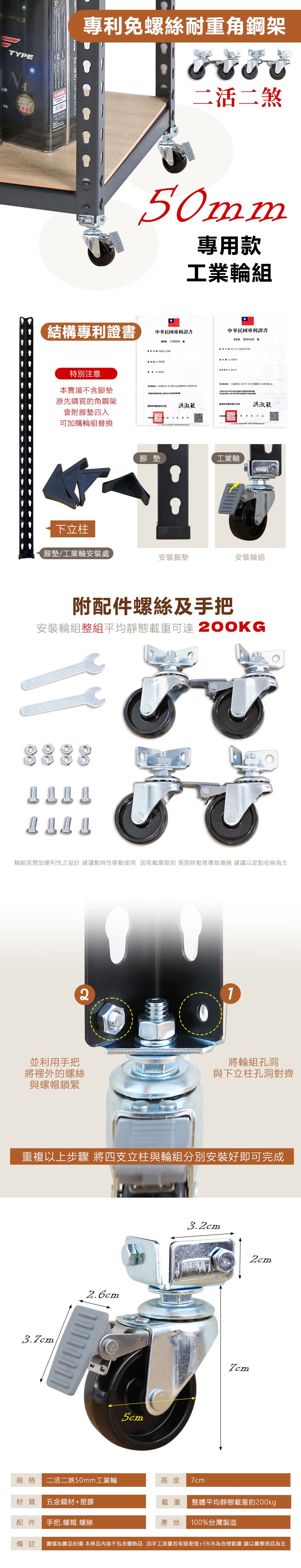 【居家cheaper】MIT角鋼架專用50MM工業輪組(二活二煞)二活二煞