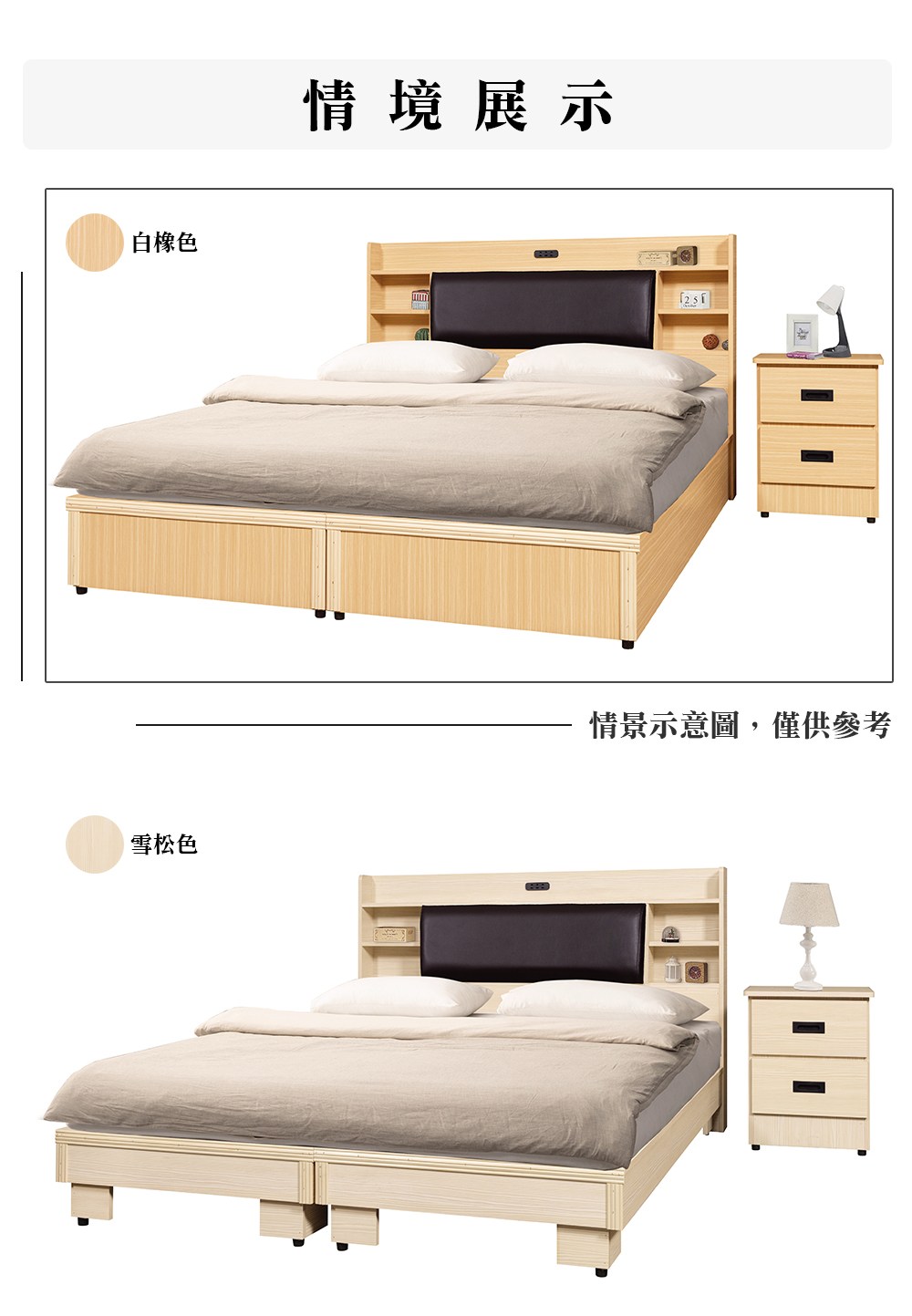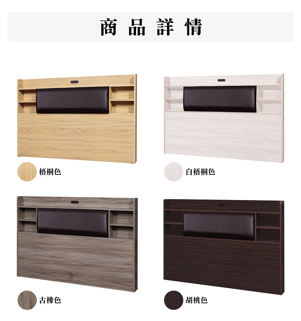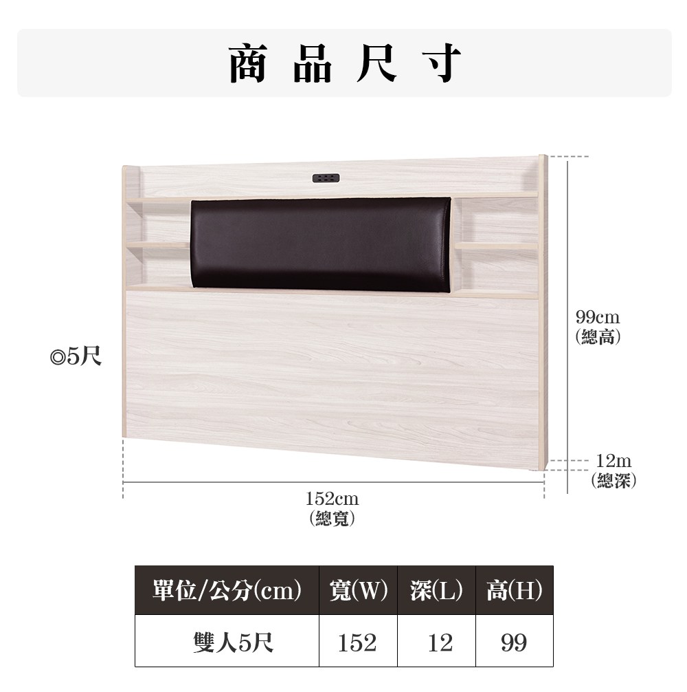 【顛覆設計】二件組 靠枕插座床頭片+6分床底(雙人5尺)雪松色