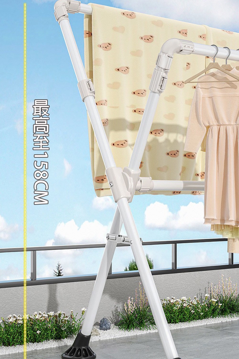 不鏽鋼曬衣架晾曬架X型晾衣架落地折疊晾衣架落地不銹鋼折疊家用陽臺掛衣服曬被子神器加粗戶外雙桿掛架