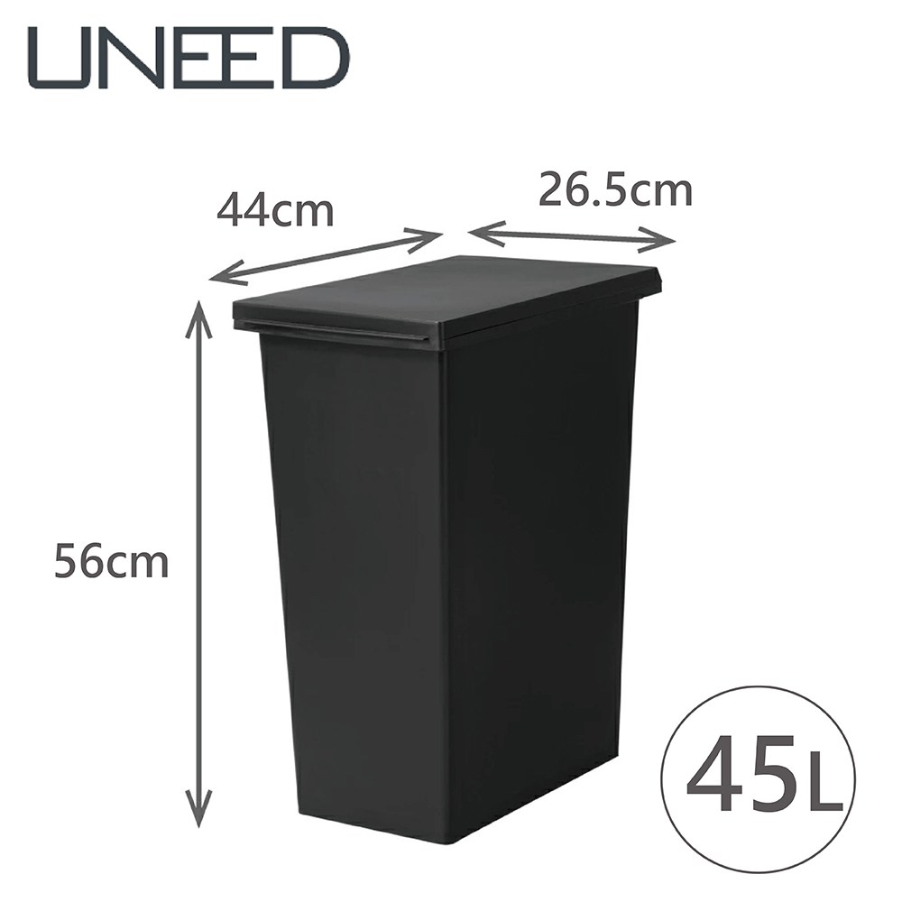 UNEED系列翻蓋對開垃圾桶45L 黑色