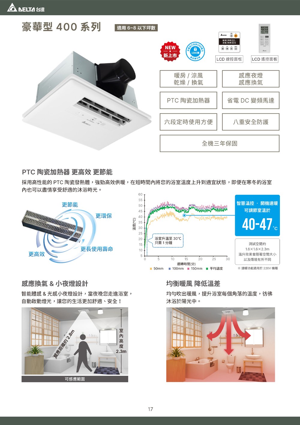 【台達電子】豪華400暖風機含標準安裝VHB40BDMT-AD(220V/線控)