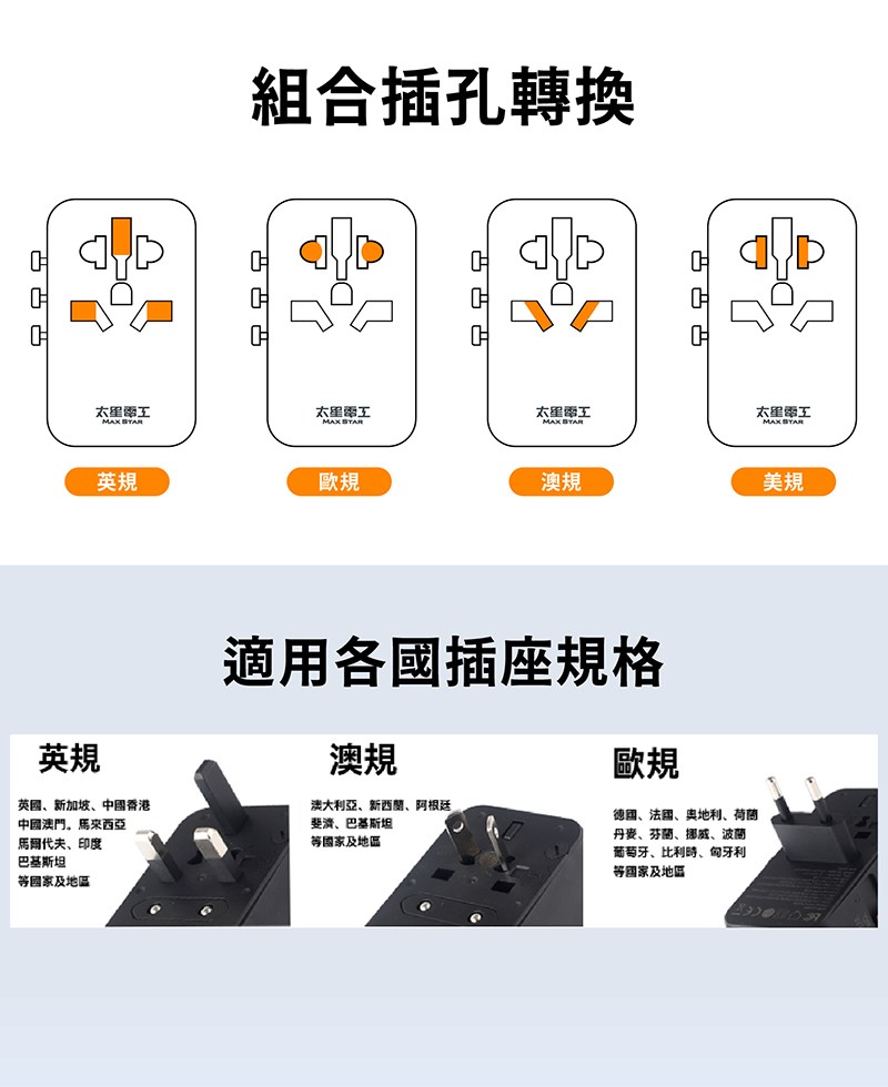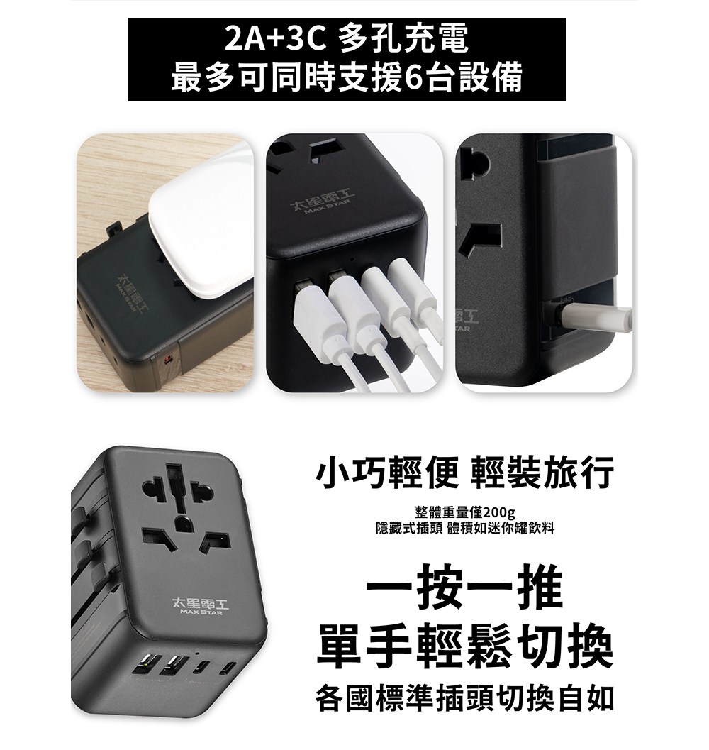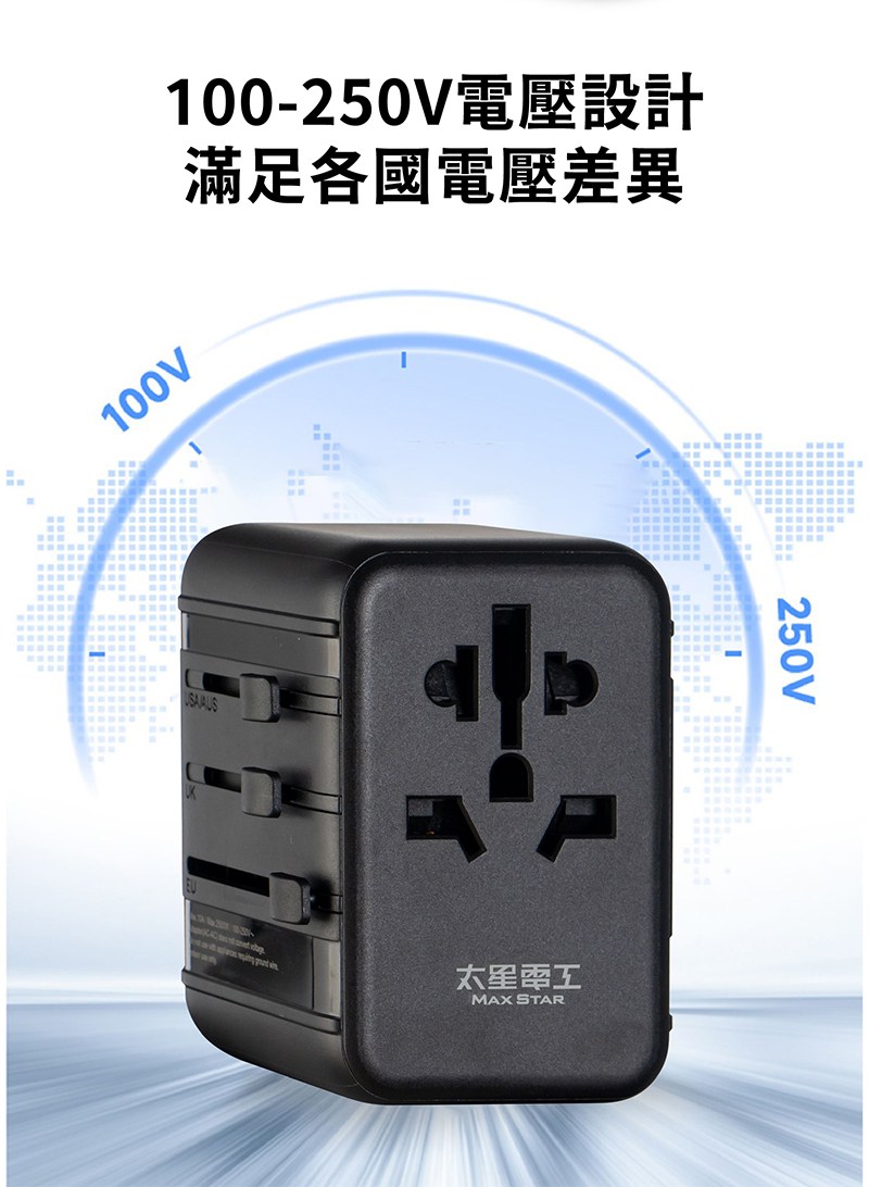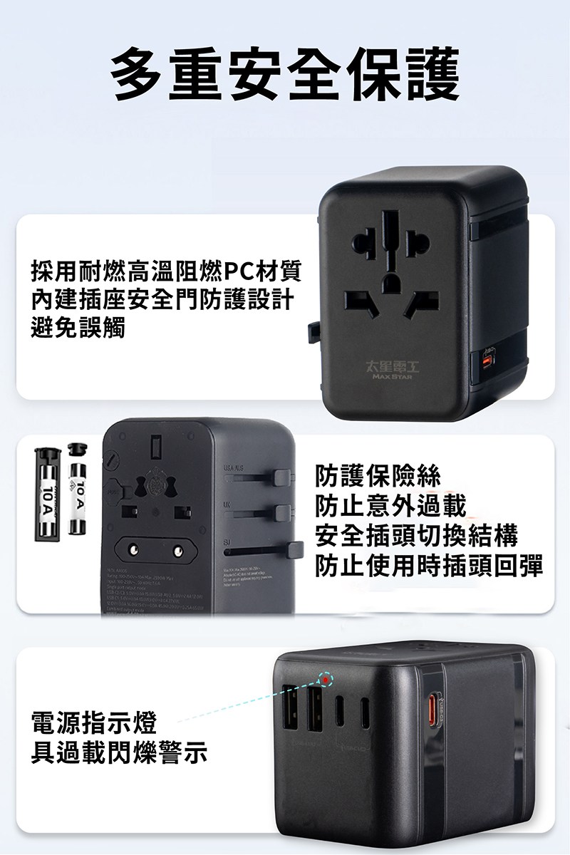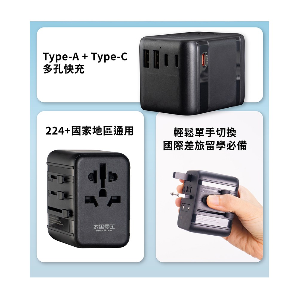 MAX STAR 太星電工 氮化鎵PD20W旅行用插座/3USB 多國轉換 全球通用電壓 白色 1個
