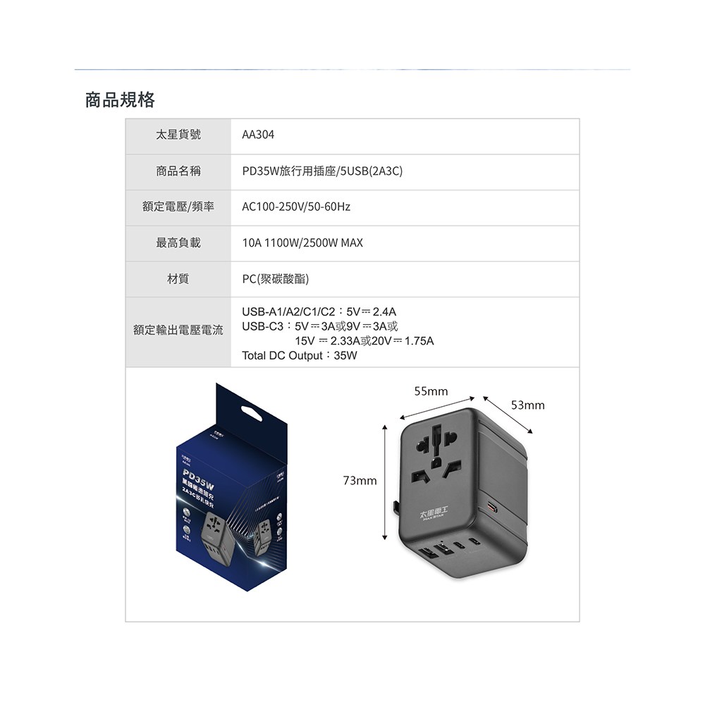 太星PD35W旅行用萬國插座
