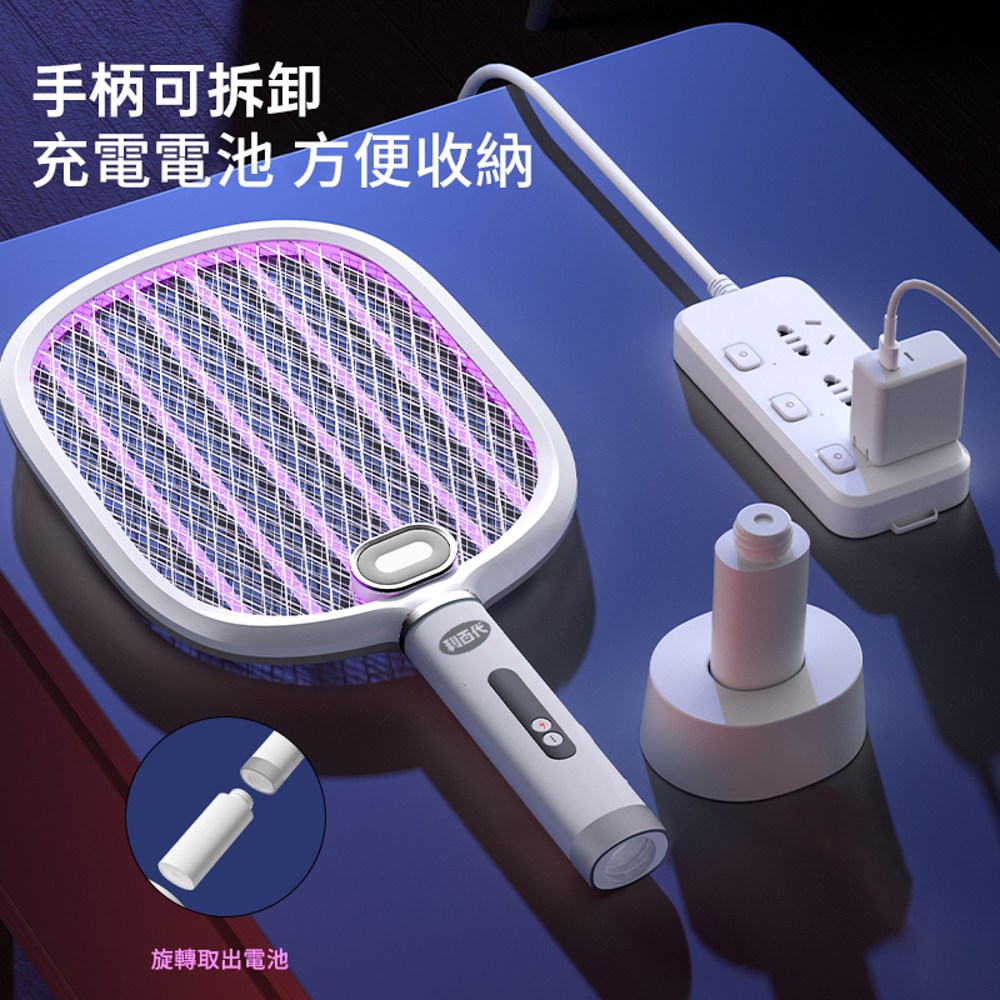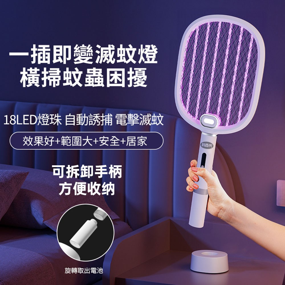 樂生活嚴選 旋轉二合一電蚊拍/捕蚊燈(手持/站立/吊掛)