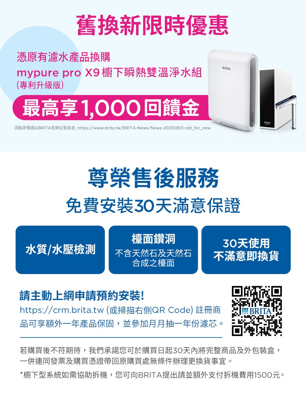 rewatt yo-50櫥下瞬熱飲水機+ brita mypure x6超濾過濾系統 -瞬熱雙溫淨水