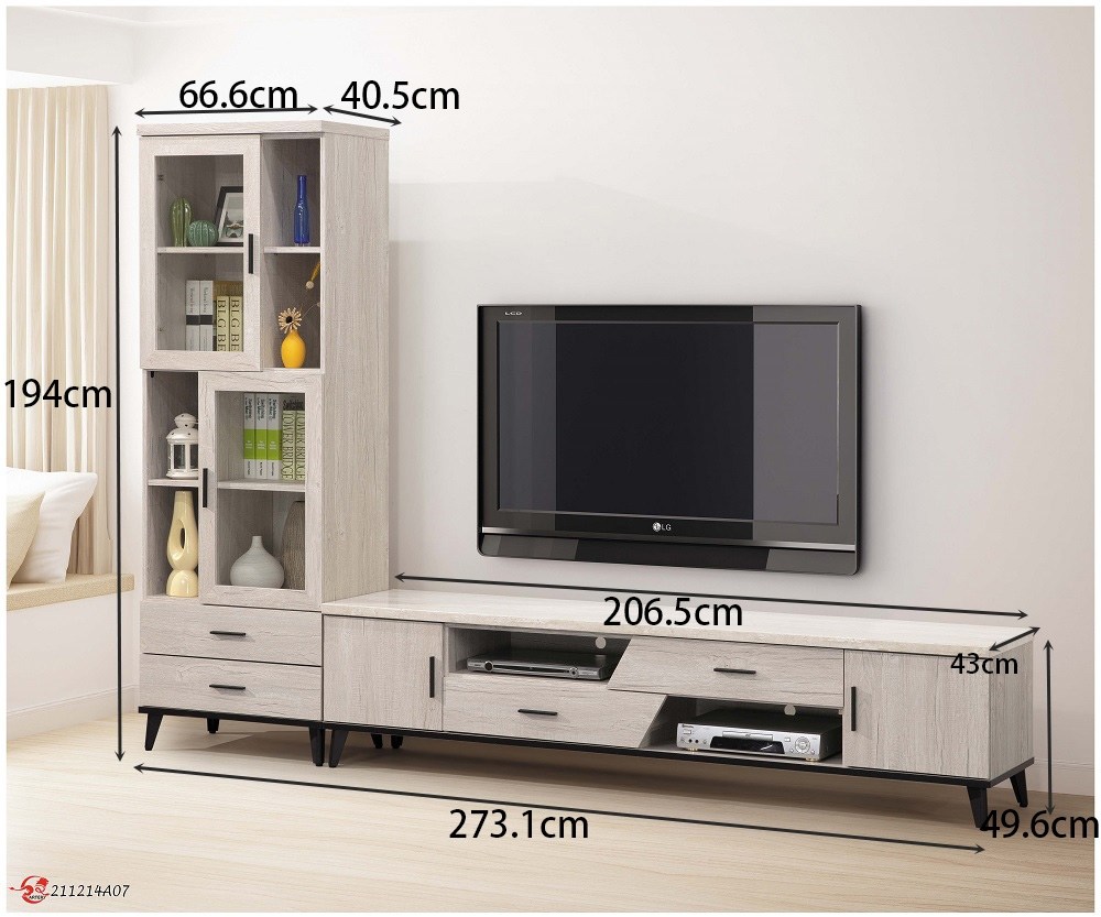 尺寸規格 寬 273.1 X 深 43 X 高 194 (公分)(腳高12公分)