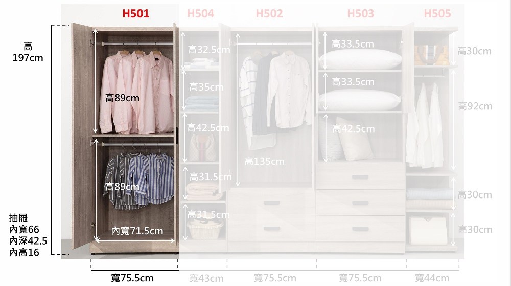 尺寸規格 寬 75.5 X 深 60 X 高 197 公分
