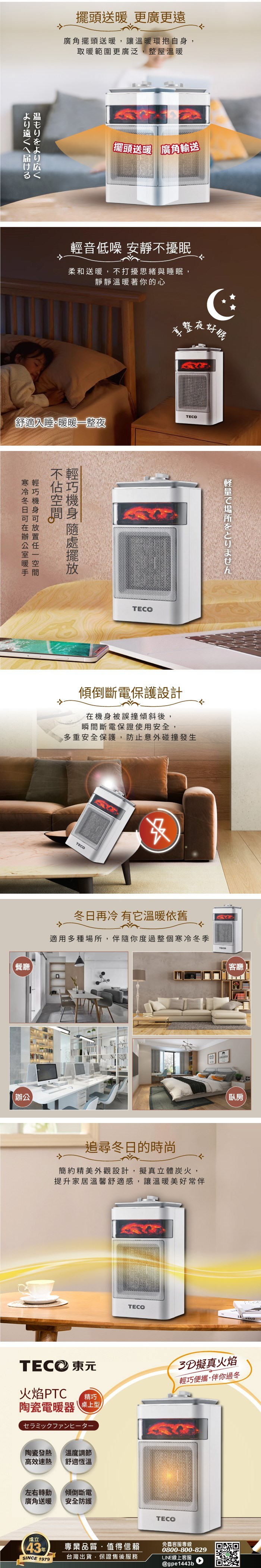 【TECO東元】3D擬真火焰PTC陶瓷電暖器