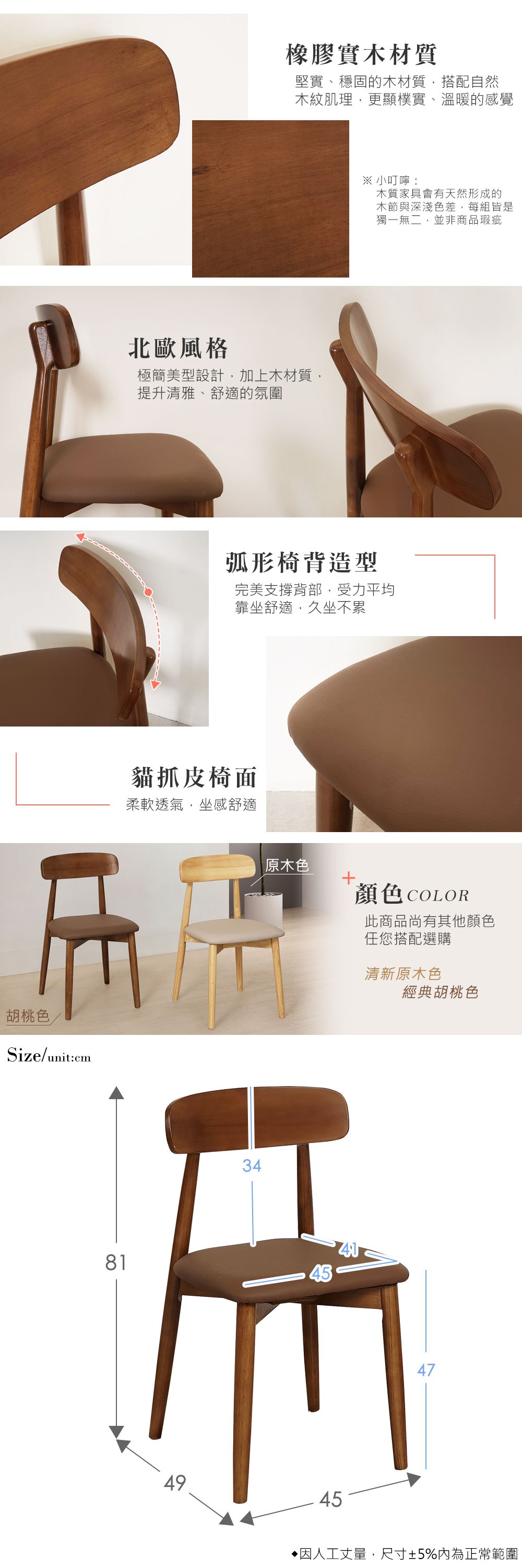 Homelike 喜家居貓抓皮實木餐椅-2入組(胡桃色)(2431)