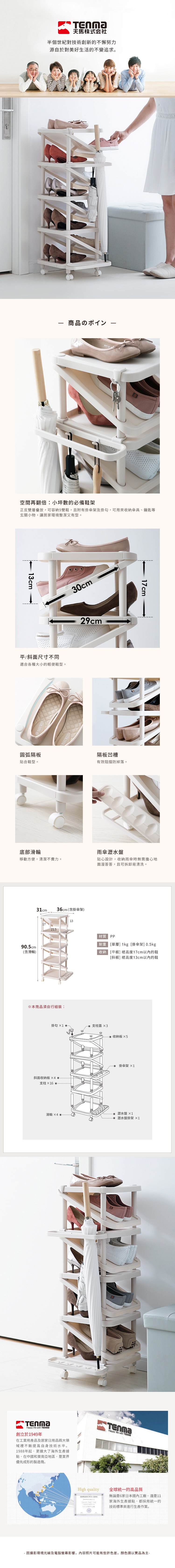 【日本天馬】PROfix 窄型雙向九層收納鞋架(附掛傘架)
