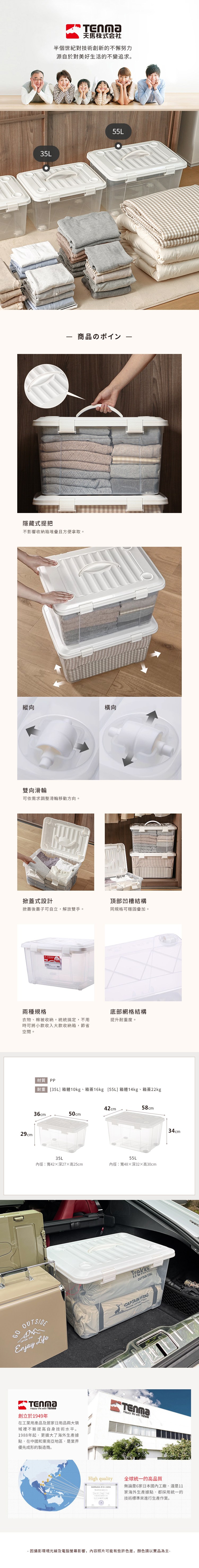 【日本天馬】手提式掀蓋收納整理箱(附輪)-35L-3入