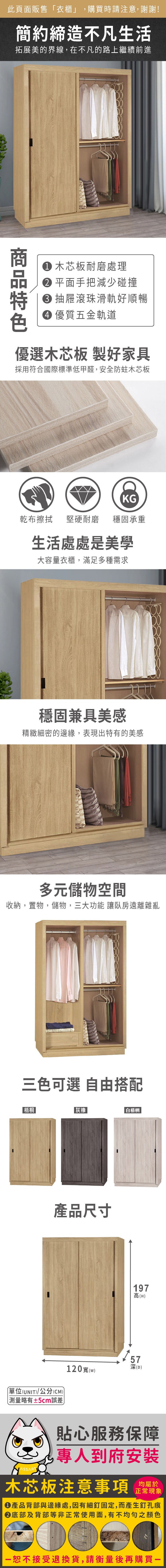 【直人木業】HAPPER北歐風滑門衣櫃118公分