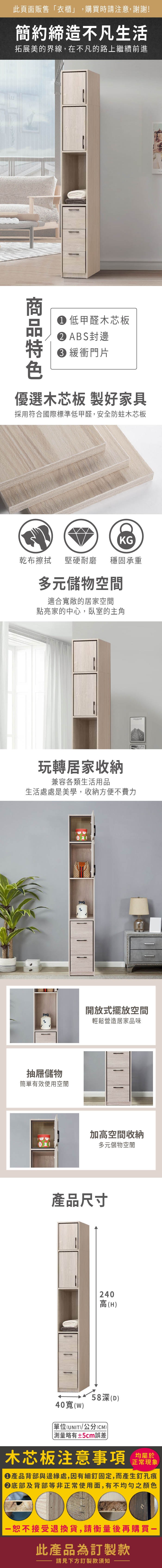 【IDEA】MIT雪白木質40cm雙桿衣櫃/衣櫥/組合櫃/拉門衣櫃(側邊櫃/棉被櫃