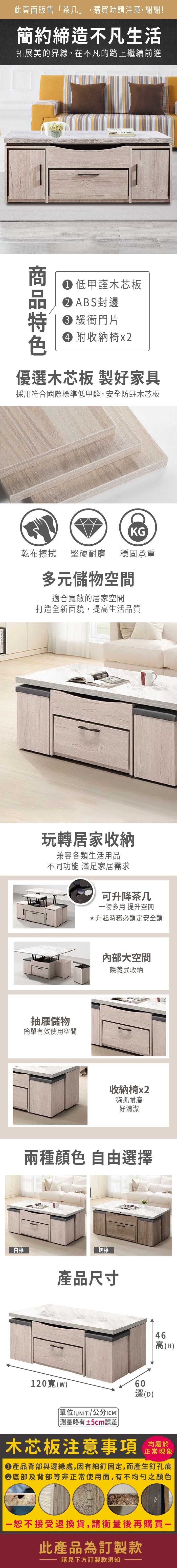 AS DESIGN雅司家具-賽凡姬耐磨4尺大茶几-120*60*47cm