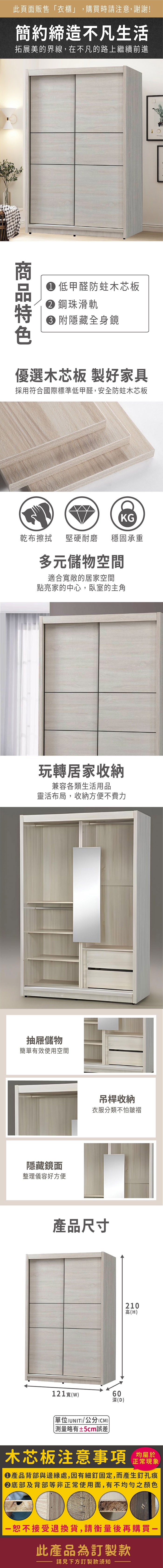 直人木業-TESS淺橡極簡風四抽滑門衣櫃120公分