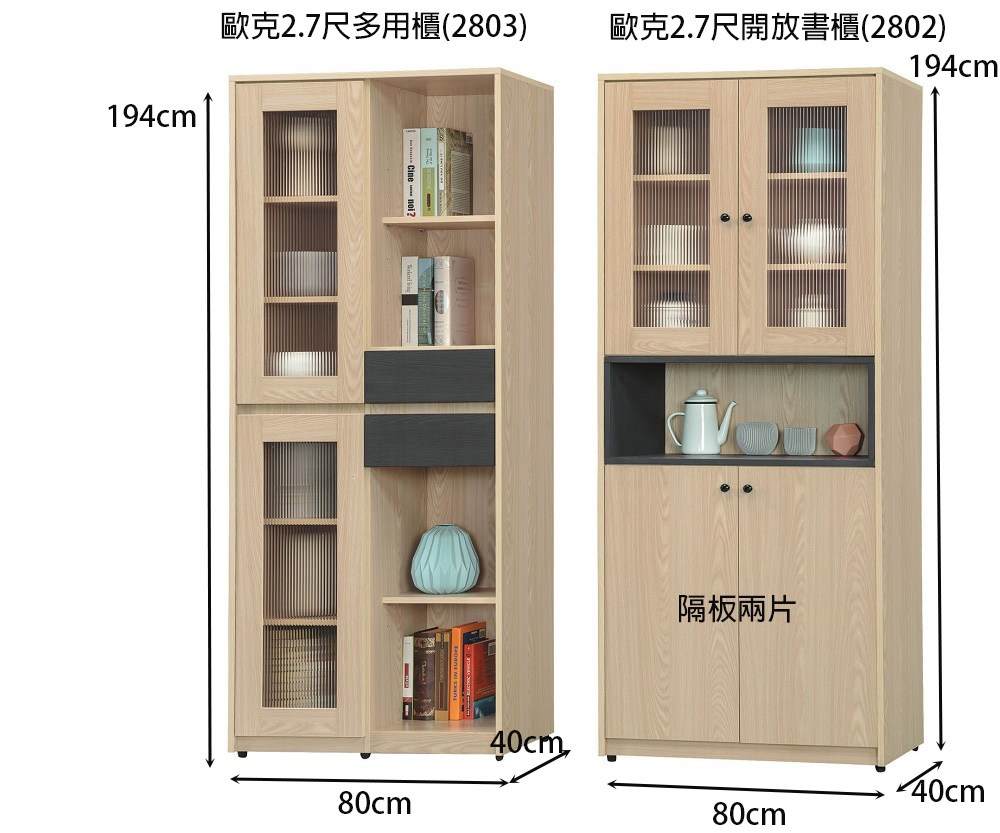 【此商品為歐克2.7尺開放書櫃(2802)】