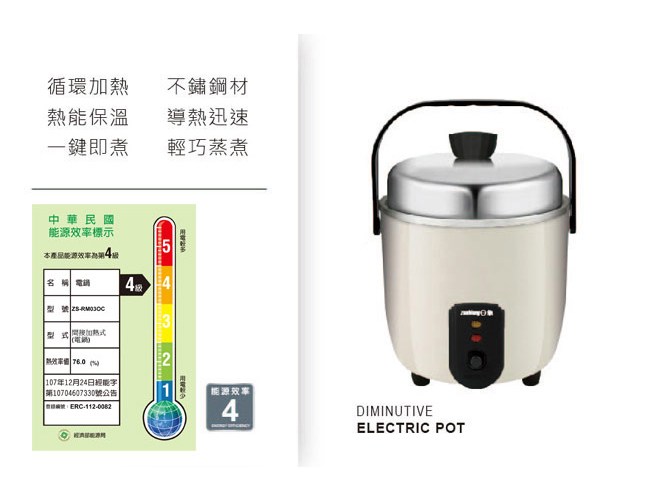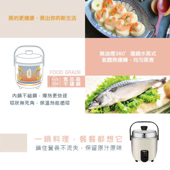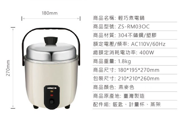 日象 輕巧煮電鍋 #304不鏽鋼 110V/60Hz 400W ZS-RM03OC 燕麥色