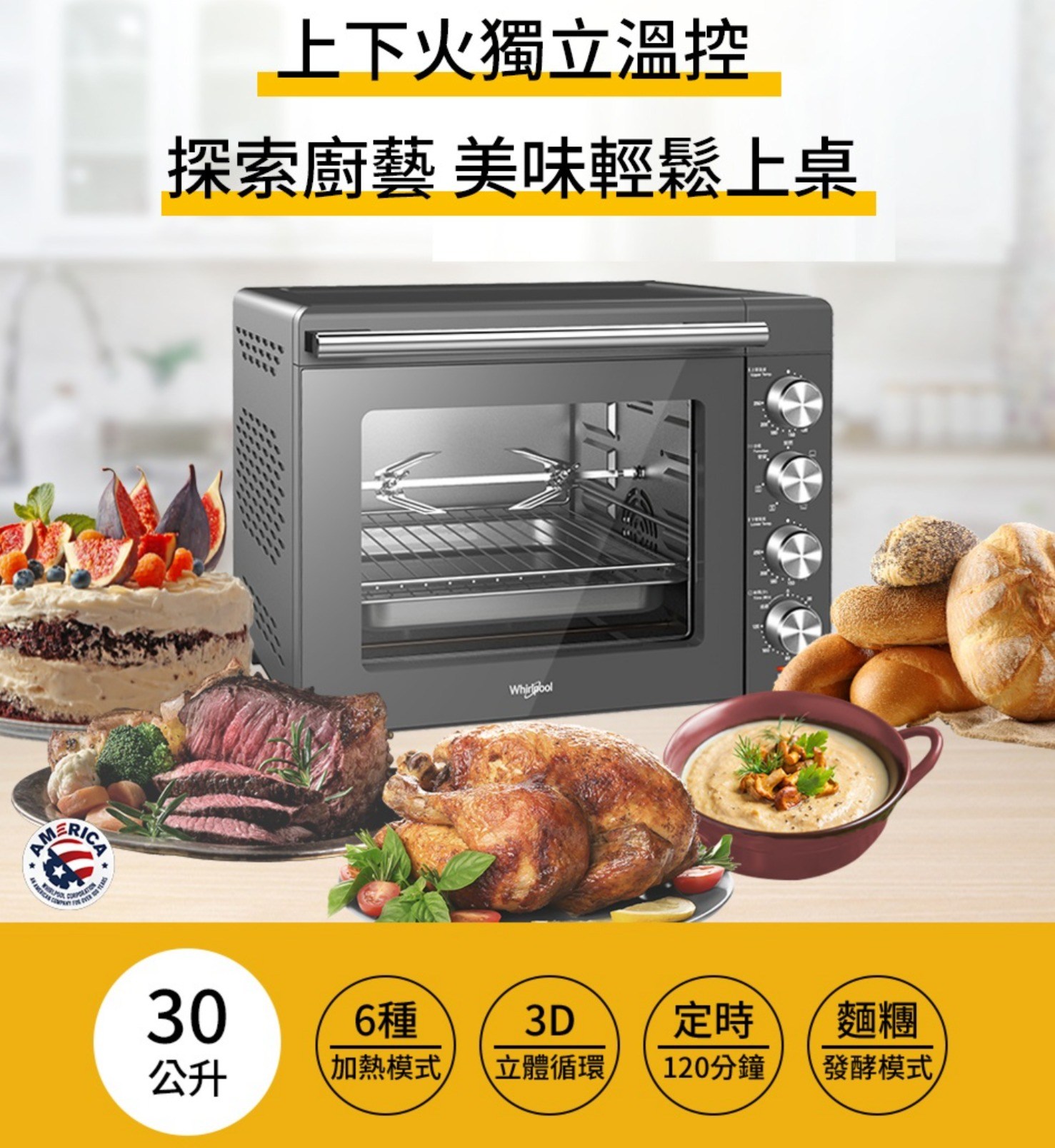 惠而浦 30L WTOM304CG 雙溫控旋風烤箱