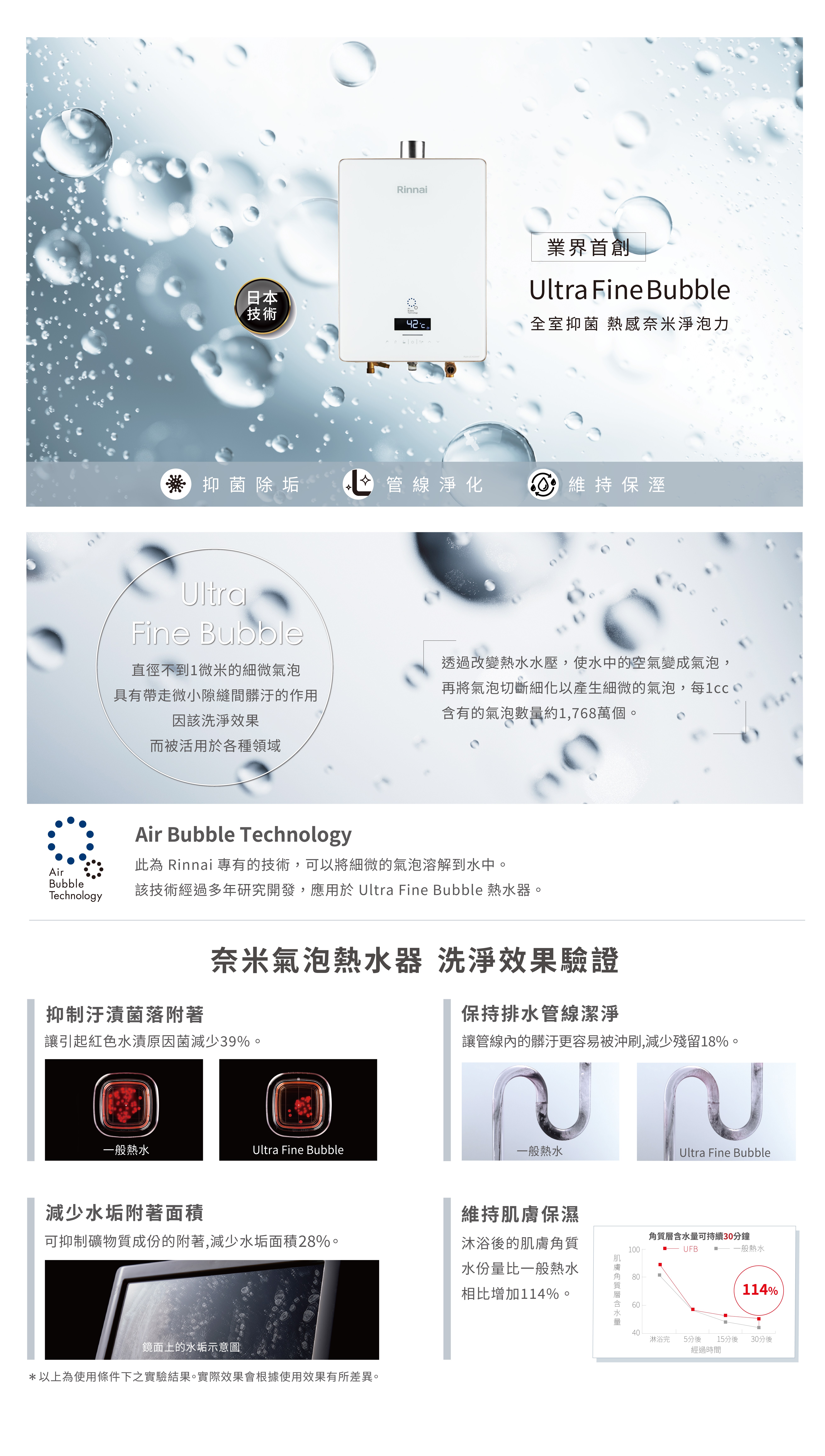 - 日本製奈米氣泡產生器,相較一般熱水器擁有更強的洗淨力、抑菌力