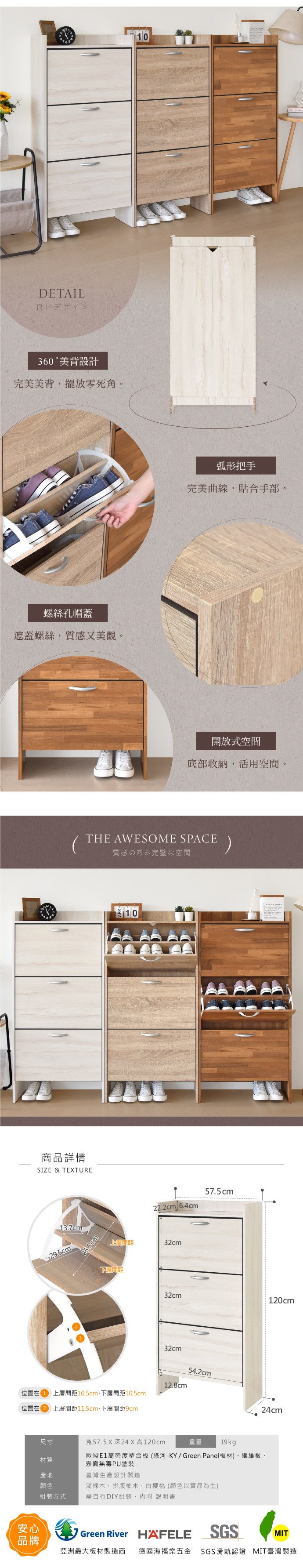 點我下載《HOPMA》設計款拉門三層鞋櫃 台灣製造 薄型掀門櫃 翻斗窄鞋架 玄關收納-白櫻桃