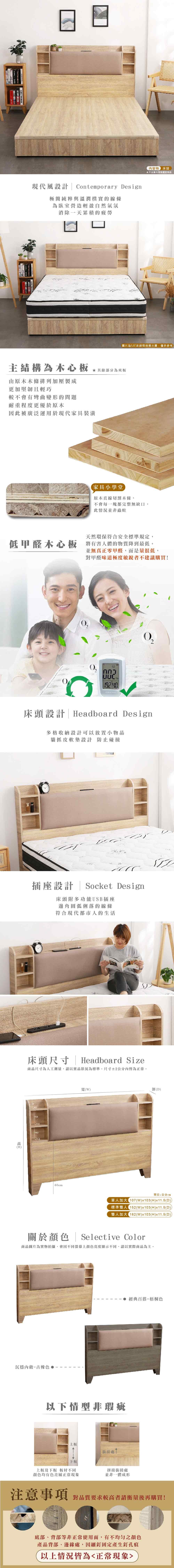 IHouse-沐森 MIT木心板 插座貓抓皮靠枕 床頭片 單大3.5尺古橡