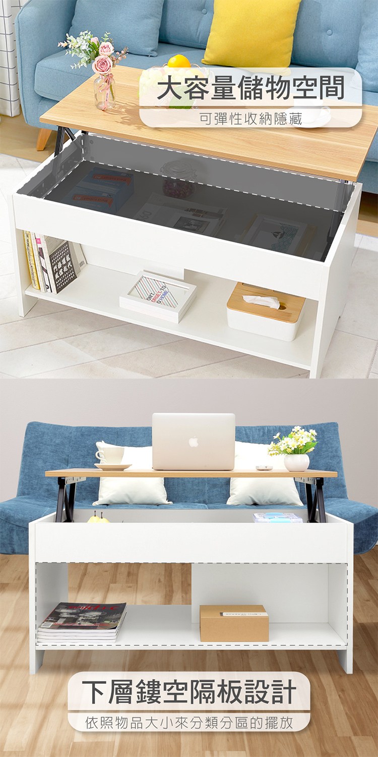 [E-home]Breeze微風系開放式收納升降茶几-幅100cm,美觀多功能家具讓居家收納不費力。