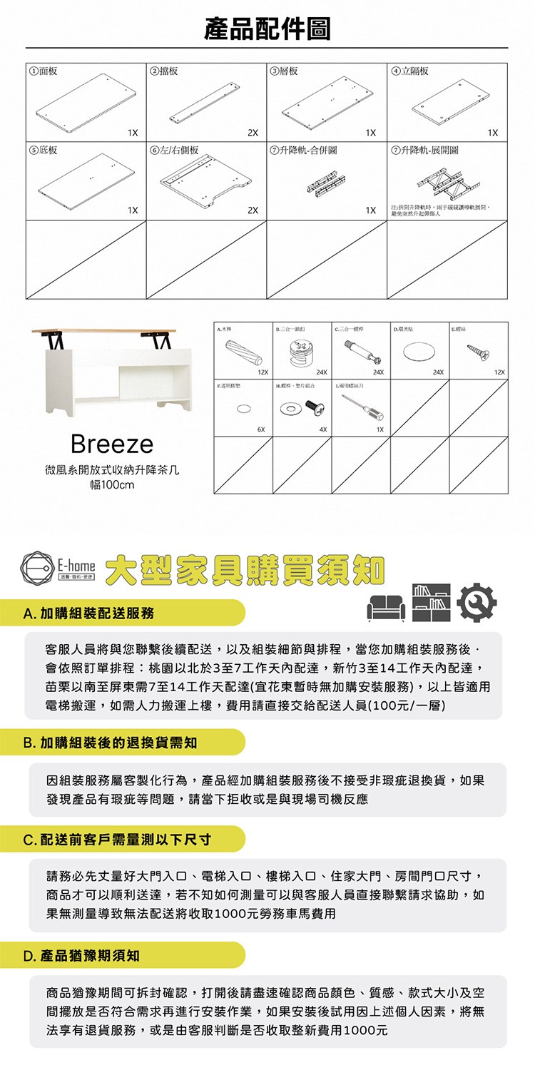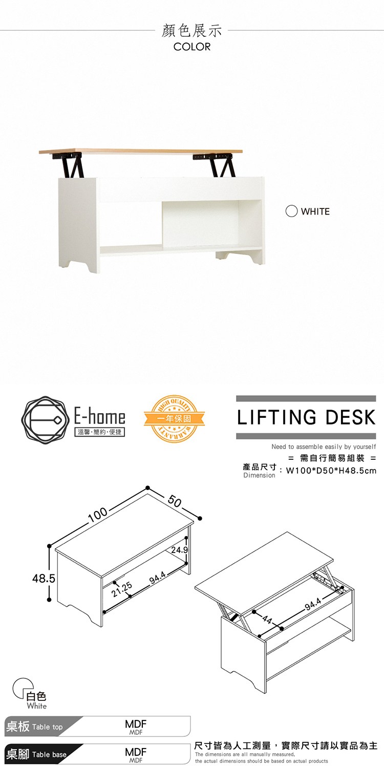 正常使用下,五金結構保固一年,立即添加到購物車,您將體驗此收納升降茶几帶給您的生活變化!