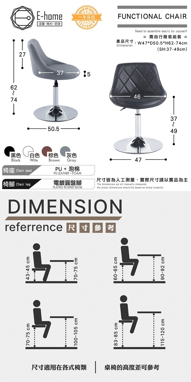 產品尺寸:W47*D50.5*H62-74 cm (SH:37-49 cm)
