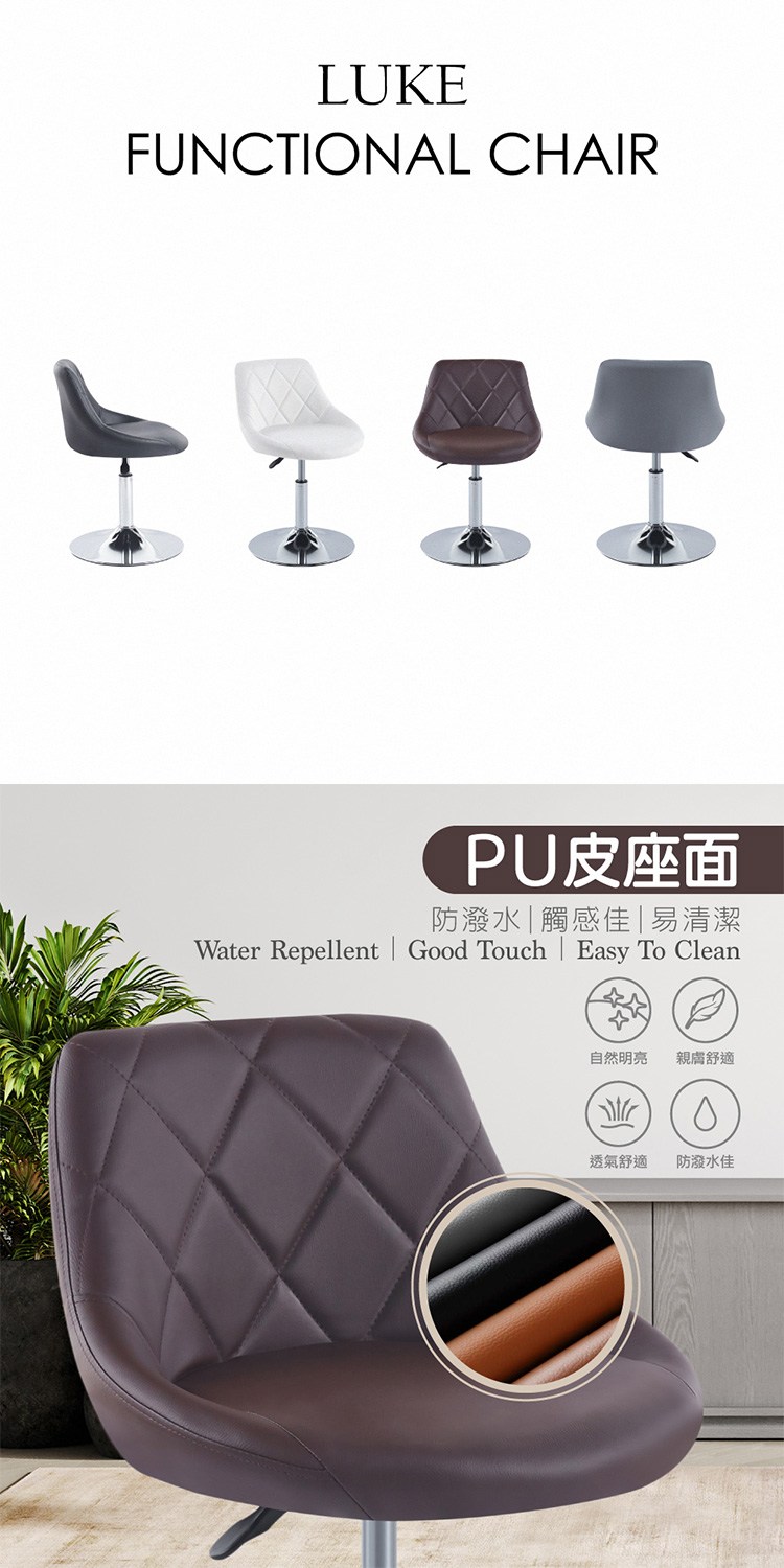 [E-home]Luke路克菱格紋皮面可調式多功能圓盤椅,時尚與古典的結合滿足生活品味,質感出眾。