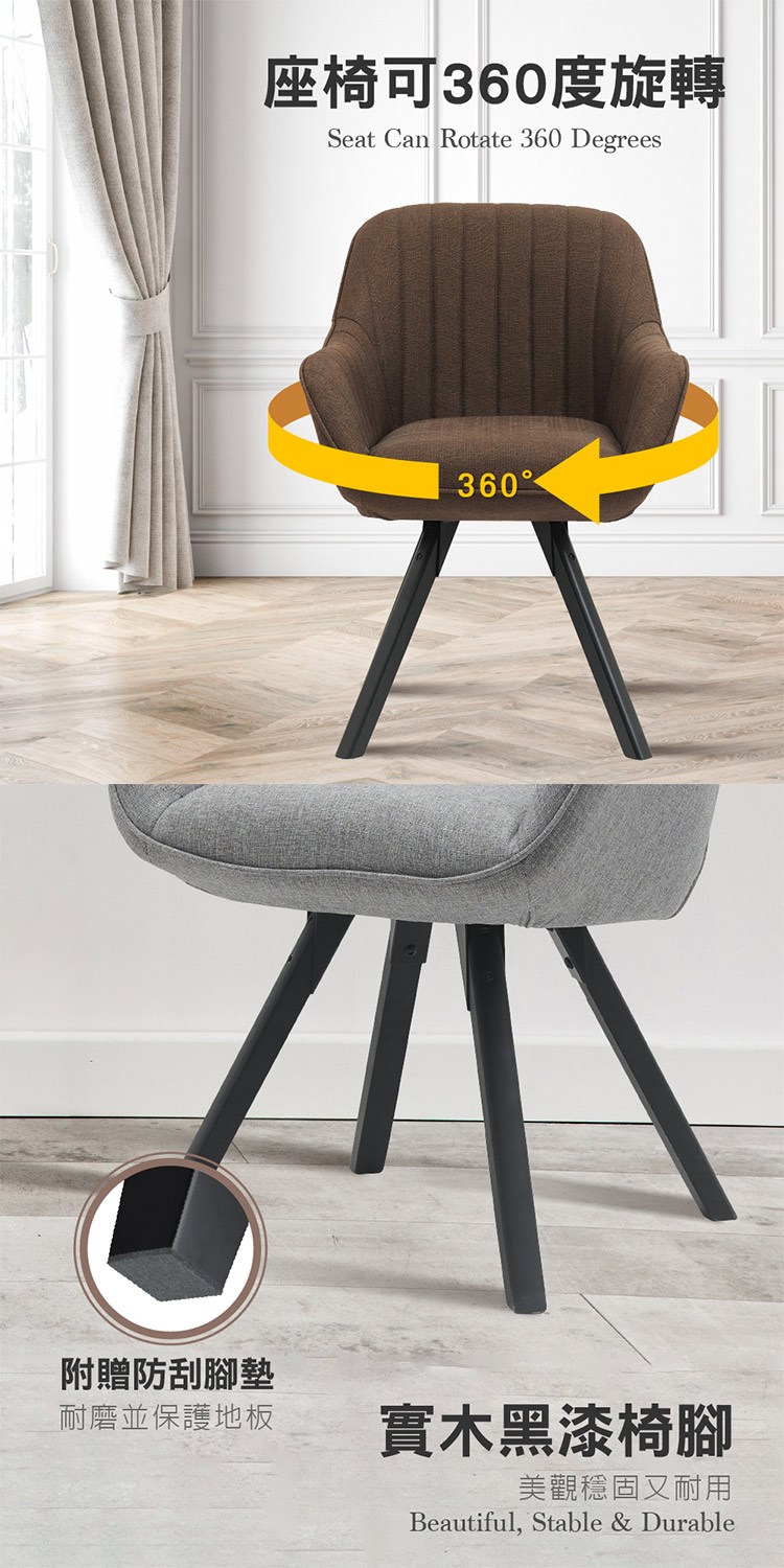實木黑漆椅腳,美觀穩固又耐用,附有防刮腳墊、耐磨並保護地板,為居家布置增添一件唯美的作品。