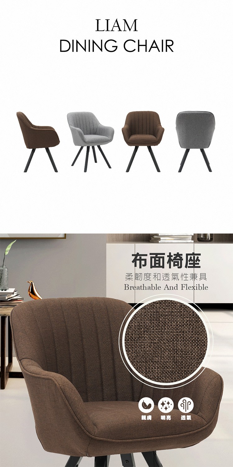 * 柔韌度和透氣性兼具的布面椅座