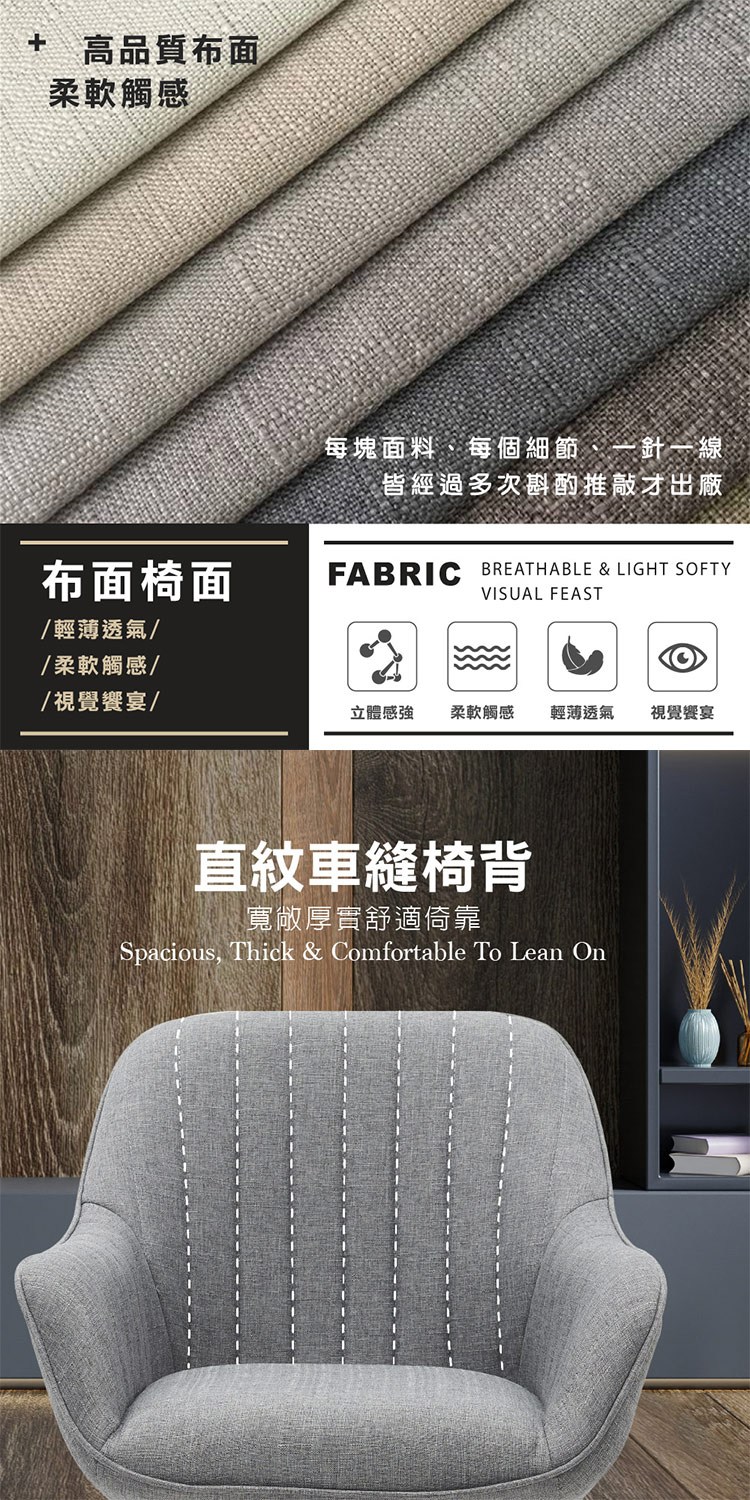 * 寬敞厚實直紋車縫椅背舒適倚靠